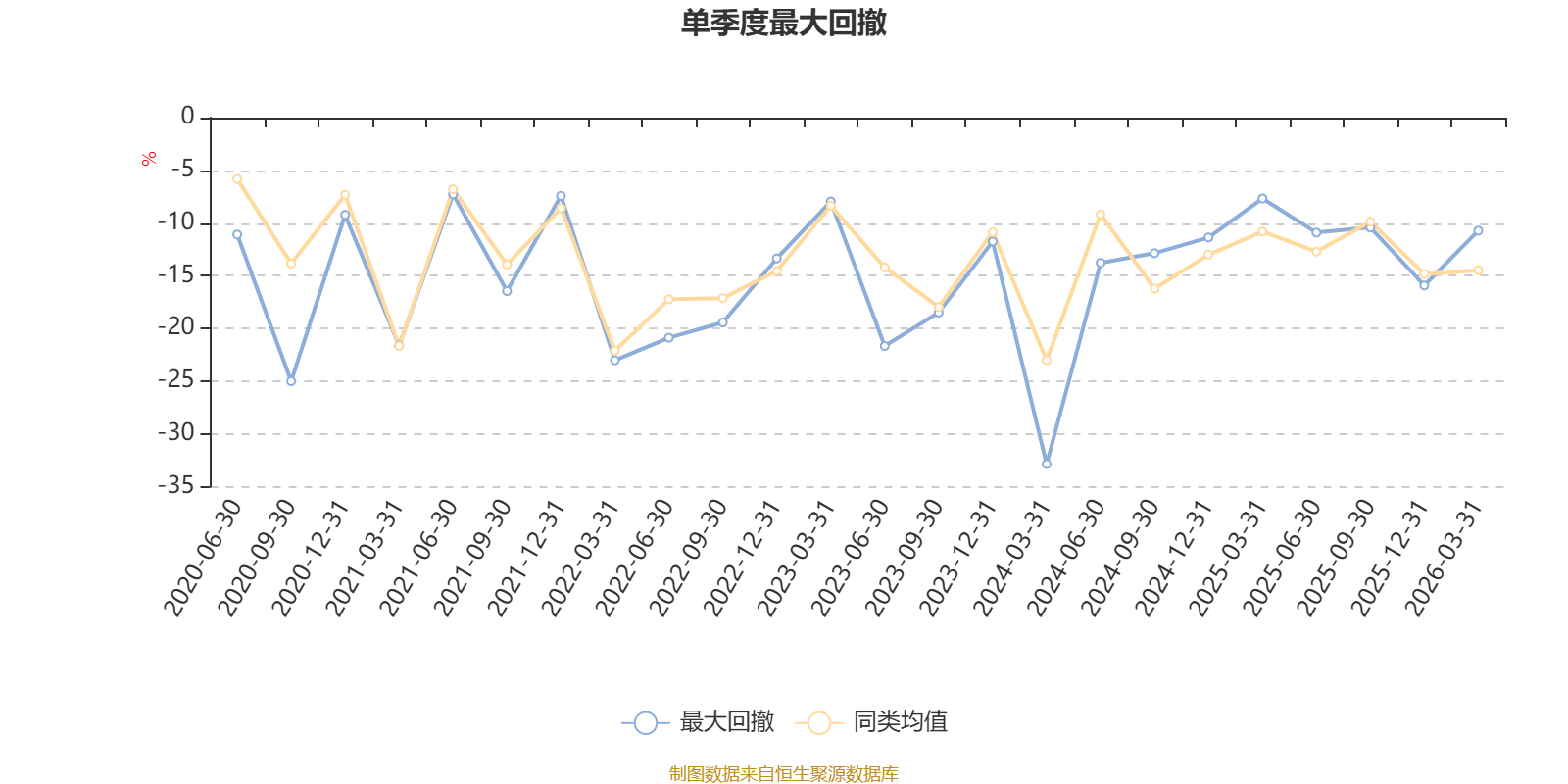 截至4月8日,基金近三年最大回撤为59.3%,同类可比基金排名163/168。单季度最大回撤出现在2024年一季度,为32.86%。