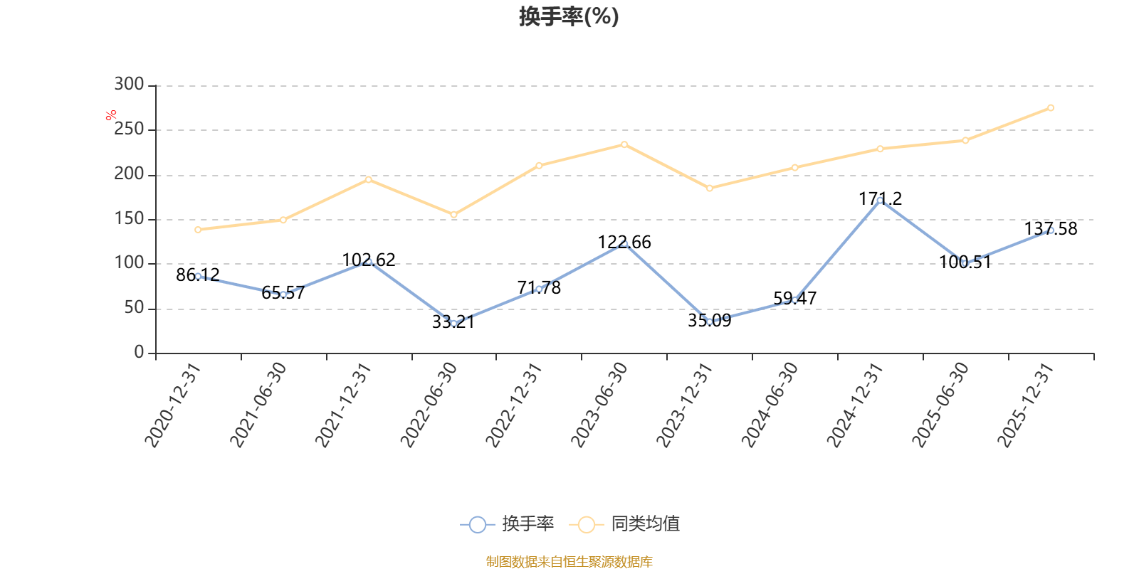 截至2025年12月31日,基金最近一年换手率约235.78%,持续低于同类均值。