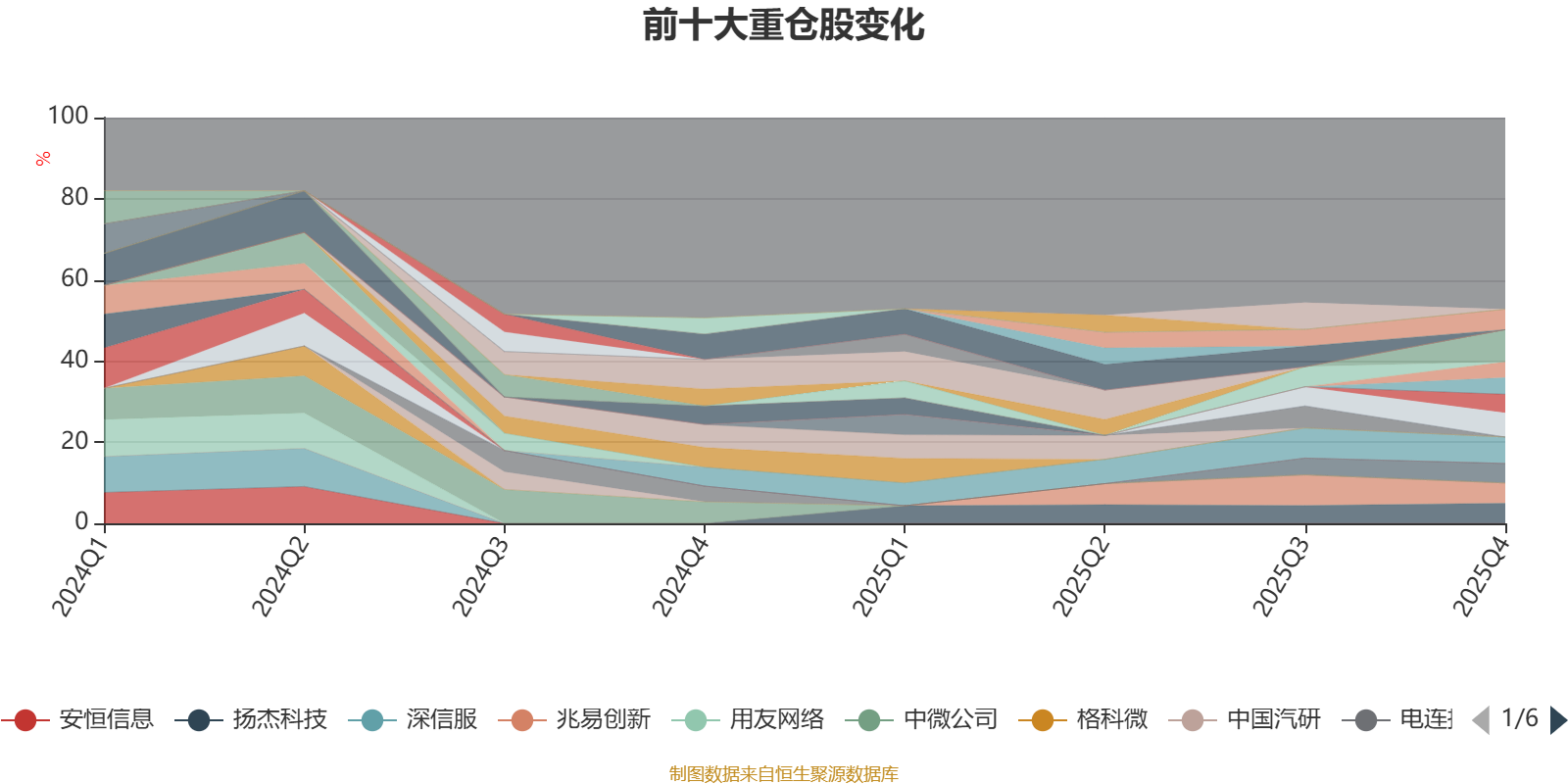 该基金持股集中度较高。截至2025年末,基金十大重仓股分别是新易盛、澜起科技、睿创微纳、中际旭创、兆易创新、扬杰科技、顺络电子、深南电路、盛科通信、鹏鼎控股。