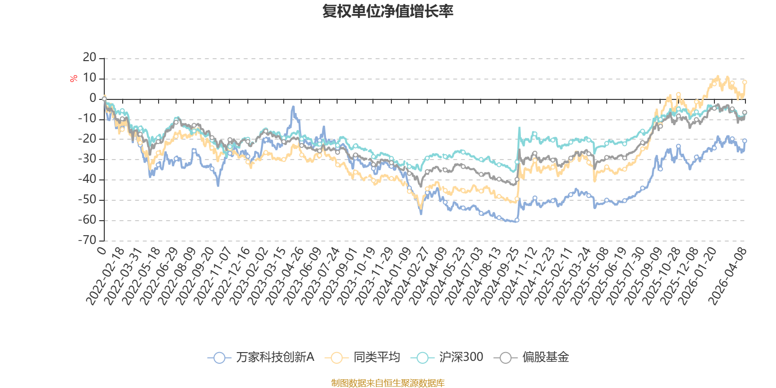 截至4月8日,万家科技创新A近三个月复权单位净值增长率为5.53%,位于同类可比基金69/229;近半年复权单位净值增长率为6.01%,位于同类可比基金107/229;近一年复权单位净值增长率为72.28%,位于同类可比基金110/229;近三年复权单位净值增长率为-17.75%,位于同类可比基金169/171。