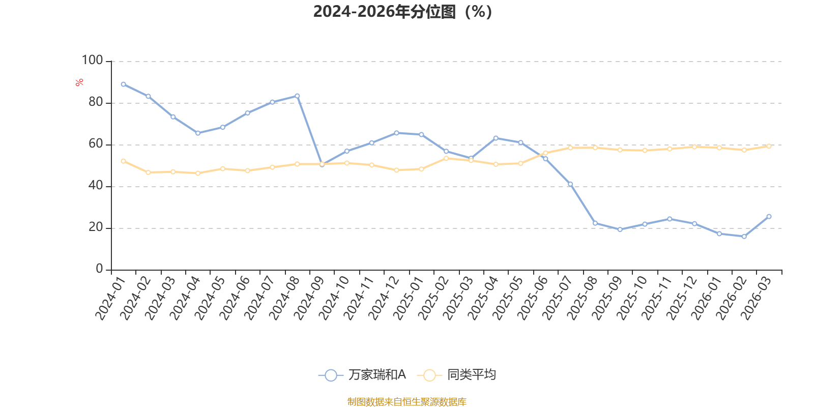 通过所选区间该基金净值增长率分位图,可以观察该基金与同类基金业绩比较情况。图为坐标原点到区间内某时点的净值增长率在同类基金中的分位数。