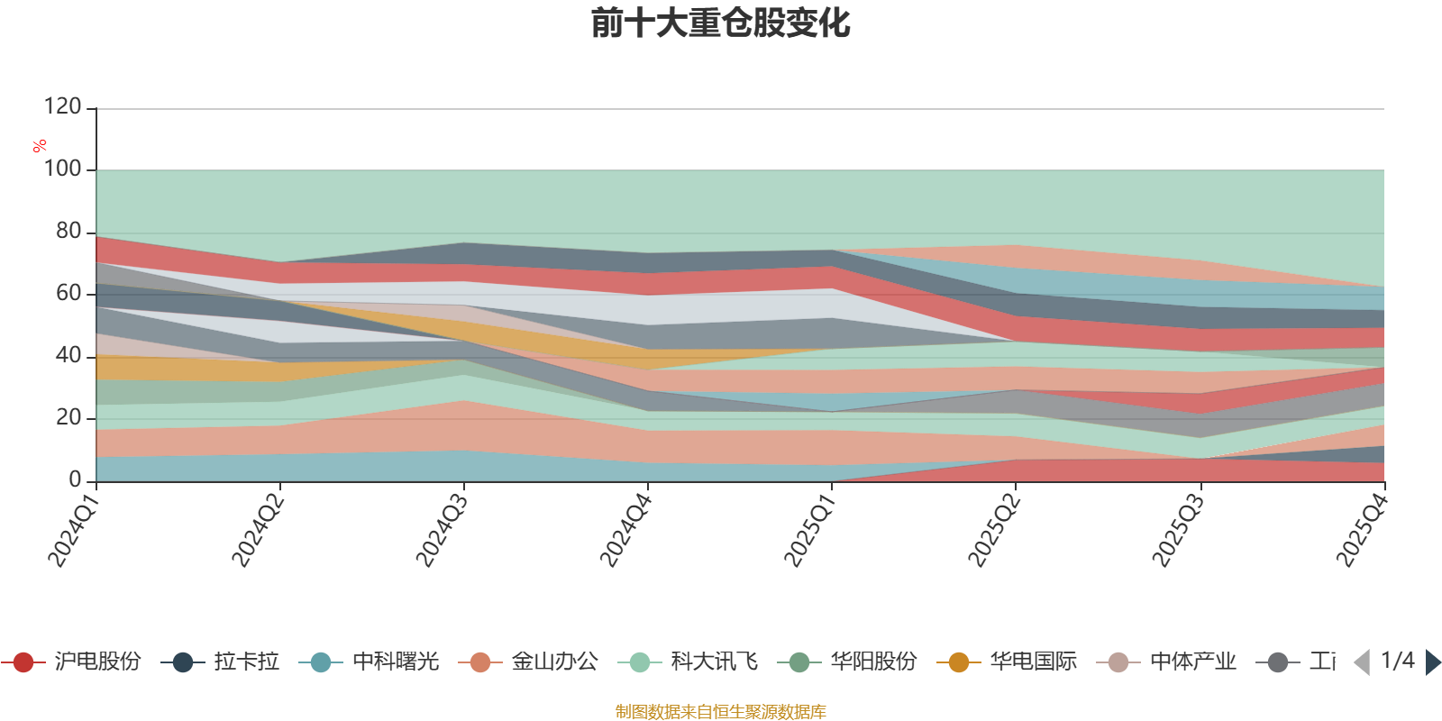 该基金持股集中度较高,近2年前十大重仓股集中度长期超过60%。截至2025年末,基金十大重仓股分别是紫金矿业、工商银行、金山办公、南京银行、北方华创、科大讯飞、沪电股份、恒瑞医药、拉卡拉、协创数据。