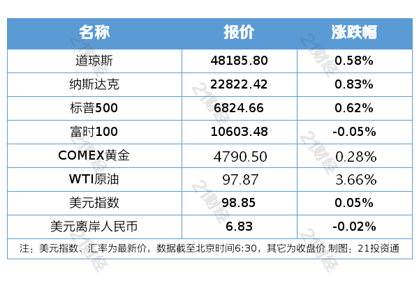 纽约股市三大股指4月9日上涨。截至当天收盘,道琼斯工业平均指数比前一交易日上涨275.88点,收于48185.80点,涨幅为0.58%;标准普尔500种股票指数上涨41.85点,收于6824.66点,涨幅为0.62%;纳斯达克综合指数上涨187.42点,收于22822.42点,涨幅为0.83%。