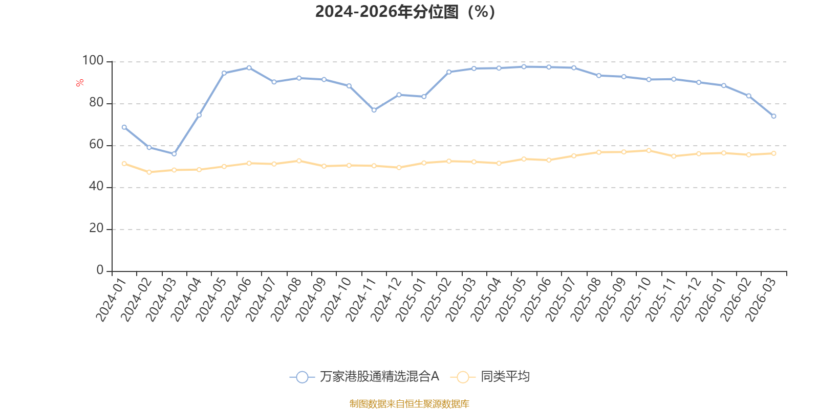 通过所选区间该基金净值增长率分位图,可以观察该基金与同类基金业绩比较情况。图为坐标原点到区间内某时点的净值增长率在同类基金中的分位数。