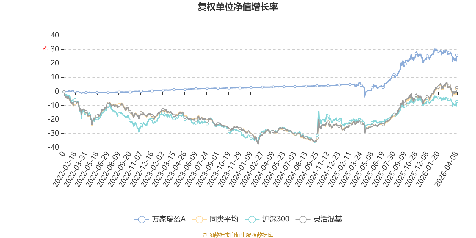截至4月8日,万家瑞盈A近三个月复权单位净值增长率为-2.52%,位于同类可比基金918/1287;近半年复权单位净值增长率为0.52%,位于同类可比基金825/1286;近一年复权单位净值增长率为29.30%,位于同类可比基金719/1286;近三年复权单位净值增长率为24.11%,位于同类可比基金425/1286。
