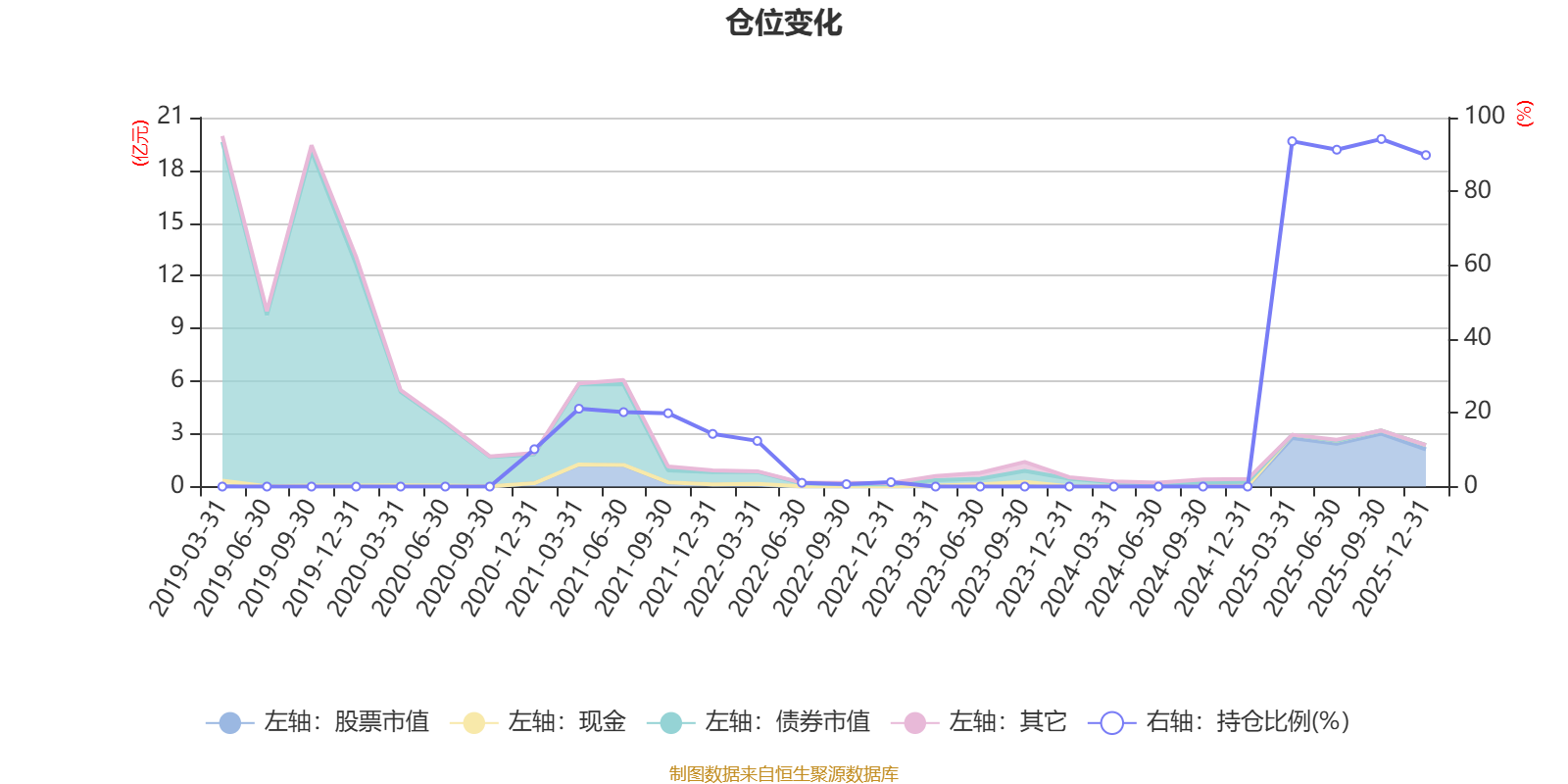 据定期报告数据统计,近三年平均股票仓位为30.74%,同类平均为72.57%。2025年三季度末基金达到94.19%的最高仓位,2022年三季度末最低,为0.65%。