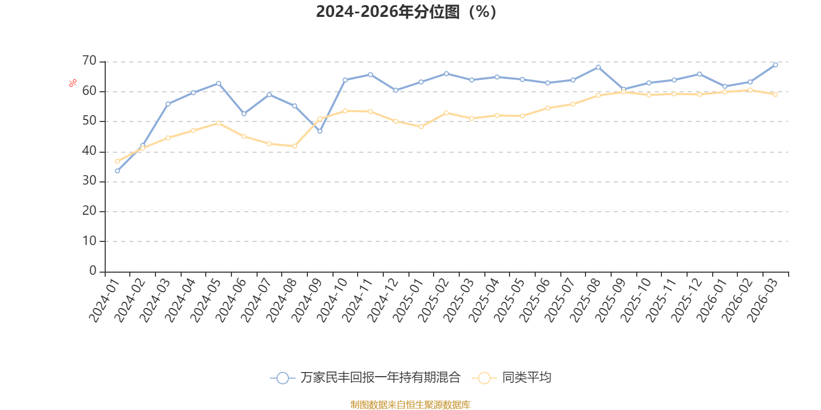 通过所选区间该基金净值增长率分位图,可以观察该基金与同类基金业绩比较情况。图为坐标原点到区间内某时点的净值增长率在同类基金中的分位数。