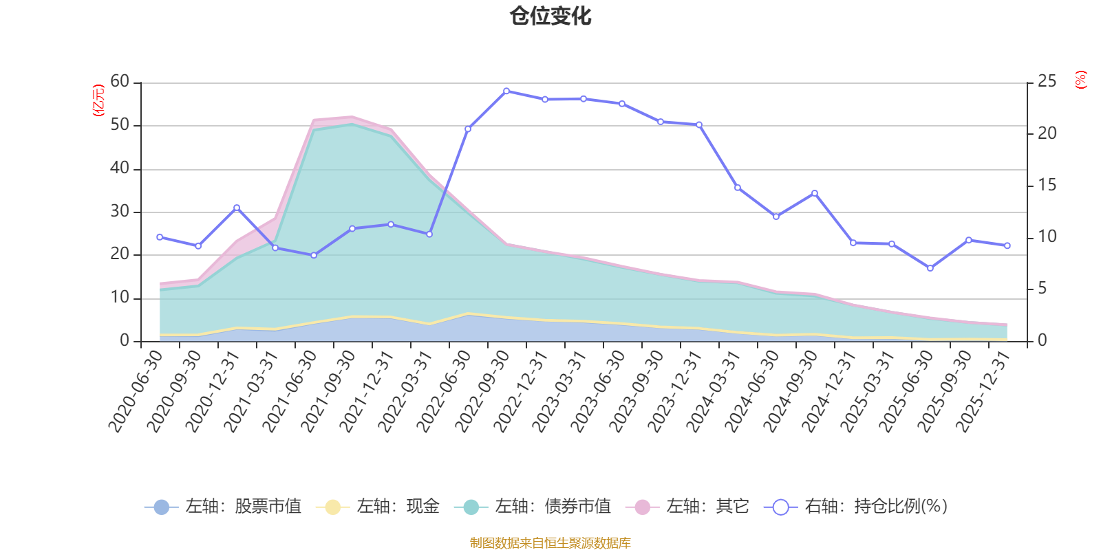 据定期报告数据统计,近三年平均股票仓位为14.56%,同类平均为19.2%。2022年三季度末基金达到24.18%的最高仓位,2025年上半年末最低,为7.07%。