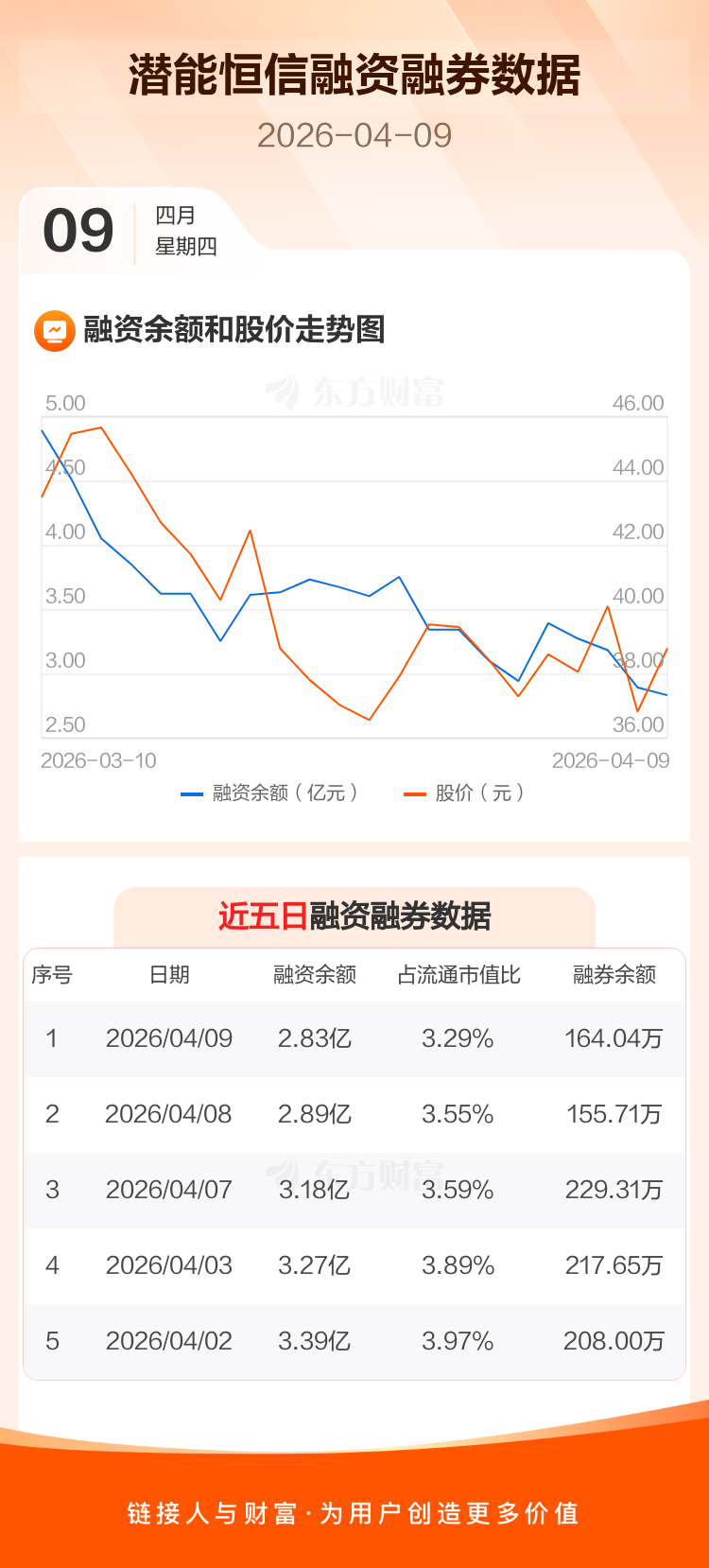 交易所最新数据显示,潜能恒信于2026年4月9日获融资买入7528.30万元,融资偿还8188.28万元,当日融资净偿还659.98万元。目前,该股融资余额2.83亿,占流通市值比例为3.29%。