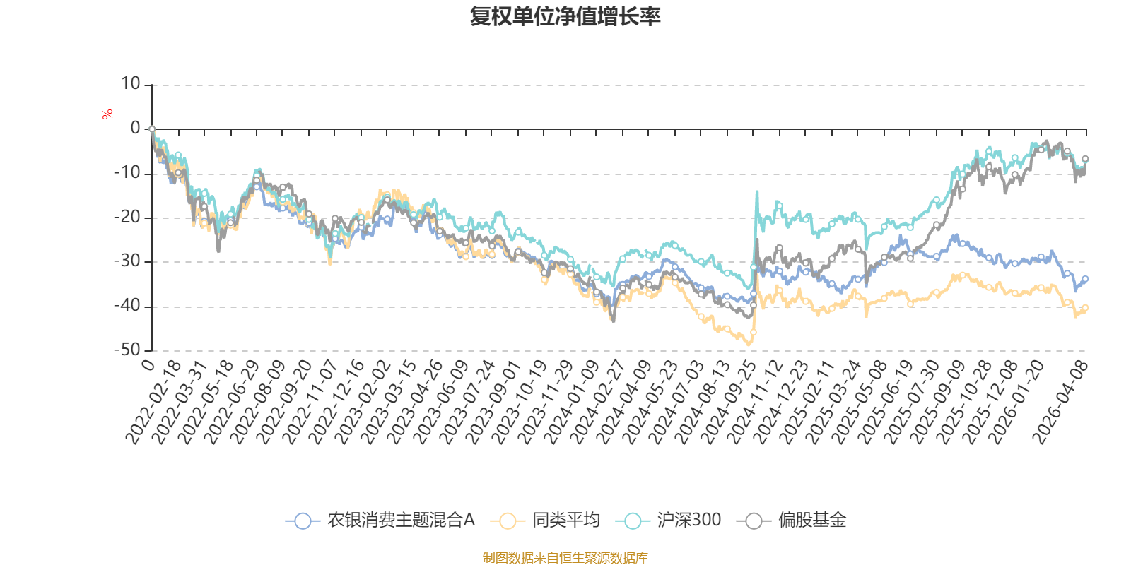 截至4月8日,农银消费主题混合A近三个月复权单位净值增长率为-5.91%,位于同类可比基金37/85;近半年复权单位净值增长率为-9.36%,位于同类可比基金31/85;近一年复权单位净值增长率为0.19%,位于同类可比基金43/85;近三年复权单位净值增长率为-17.80%,位于同类可比基金30/76。