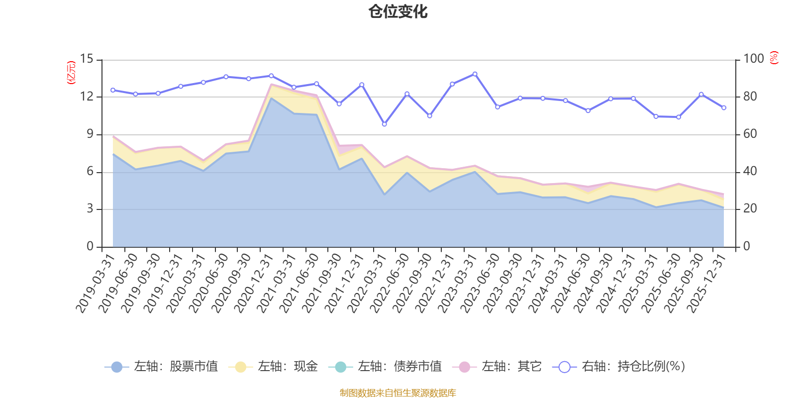 据定期报告数据统计,近三年平均股票仓位为77.54%,同类平均为87.26%。2023年一季度末基金达到92.39%的最高仓位,2022年一季度末最低,为65.59%。
