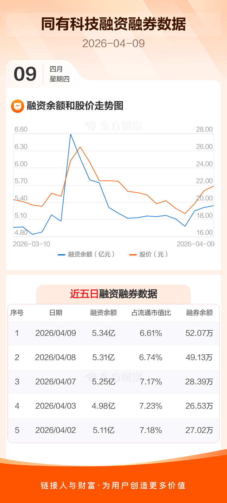交易所最新数据显示,同有科技于2026年4月9日获融资买入8927.12万元,融资偿还8628.71万元,当日融资净买入298.41万元。目前,该股融资余额5.34亿,占流通市值比例为6.61%。