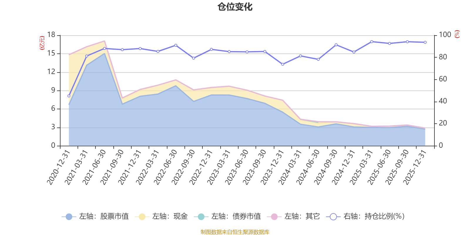 据定期报告数据统计,近三年平均股票仓位为86.63%,同类平均为85.83%。2025年一季度末基金达到94.22%的最高仓位,2020年末最低,为45.13%。