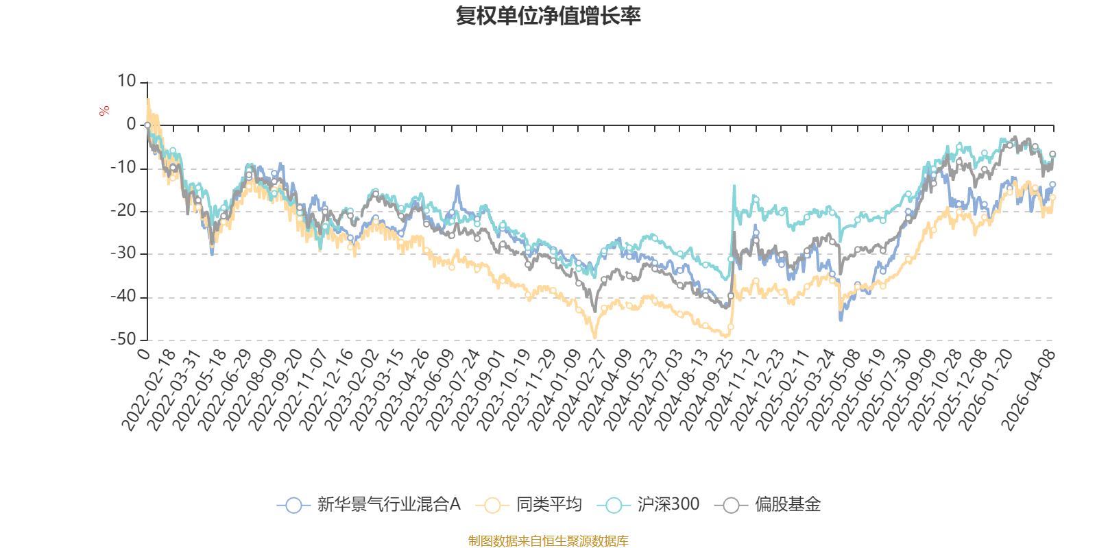截至4月8日,新华景气行业混合A近三个月复权单位净值增长率为0.97%,位于同类可比基金270/621;近半年复权单位净值增长率为-2.79%,位于同类可比基金436/621;近一年复权单位净值增长率为58.53%,位于同类可比基金164/618;近三年复权单位净值增长率为4.46%,位于同类可比基金374/559。