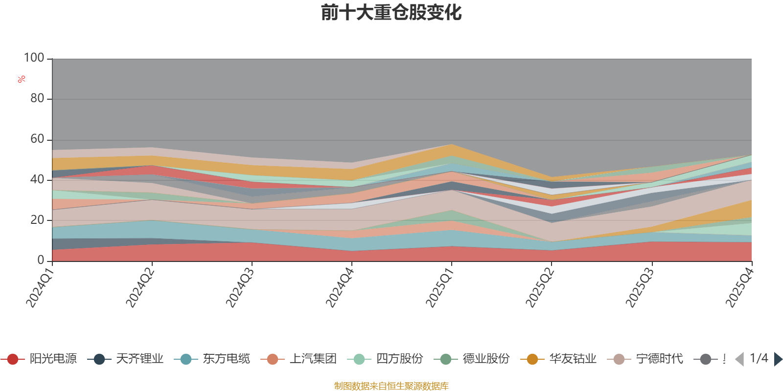 截至2025年末,基金十大重仓股分别是宁德时代、阳光电源、华友钴业、四方股份、中矿资源、东方电缆、隆基绿能、亿纬锂能、德业股份、赣锋锂业。