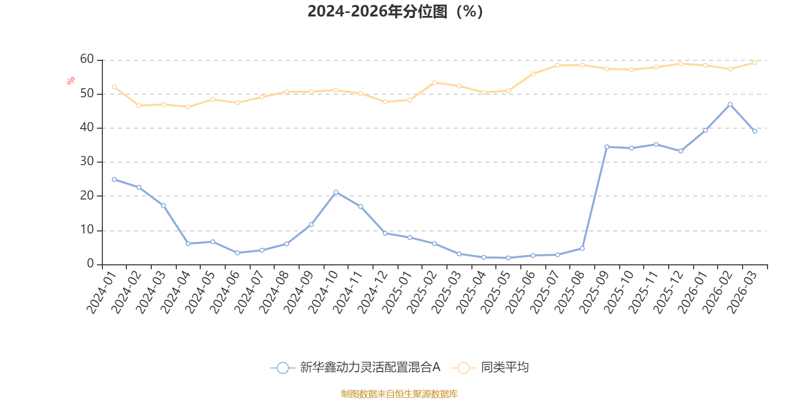 通过所选区间该基金净值增长率分位图,可以观察该基金与同类基金业绩比较情况。图为坐标原点到区间内某时点的净值增长率在同类基金中的分位数。