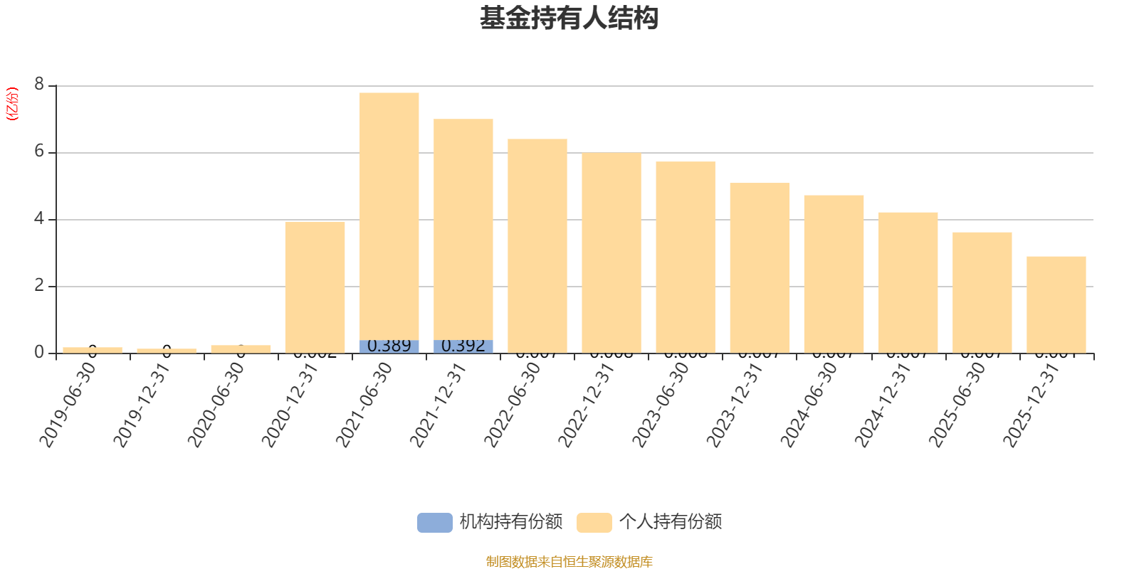 截至2025年12月31日,基金持有人共计8.6万户,合计持有2.89亿份。其中管理人员工持有6.08万份,占比0.02%,机构持有份额占比0.02%,个人投资者占比99.98%。