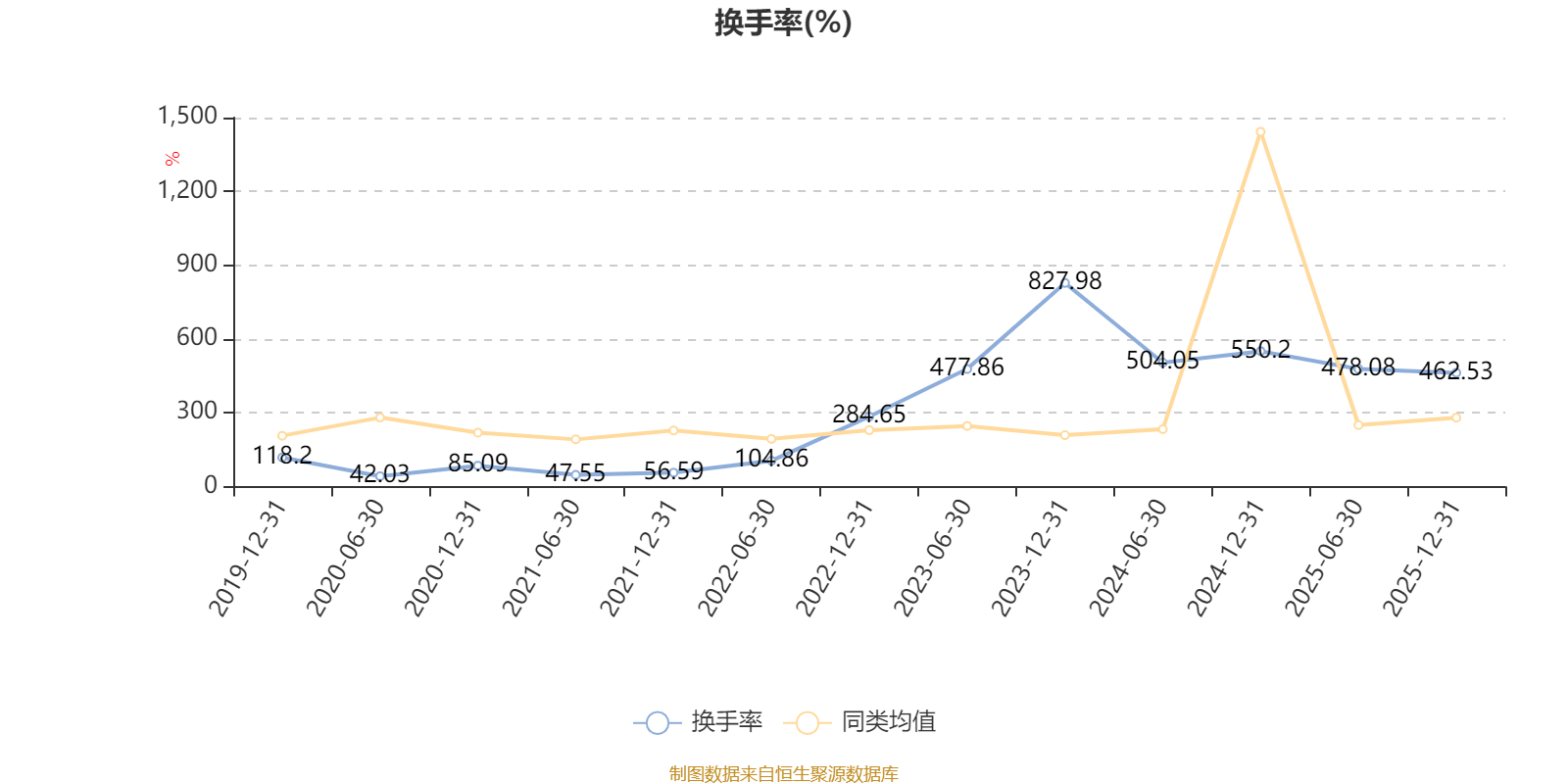 截至2025年12月31日,基金最近一年换手率约912.96%,持续1年高于同类均值。