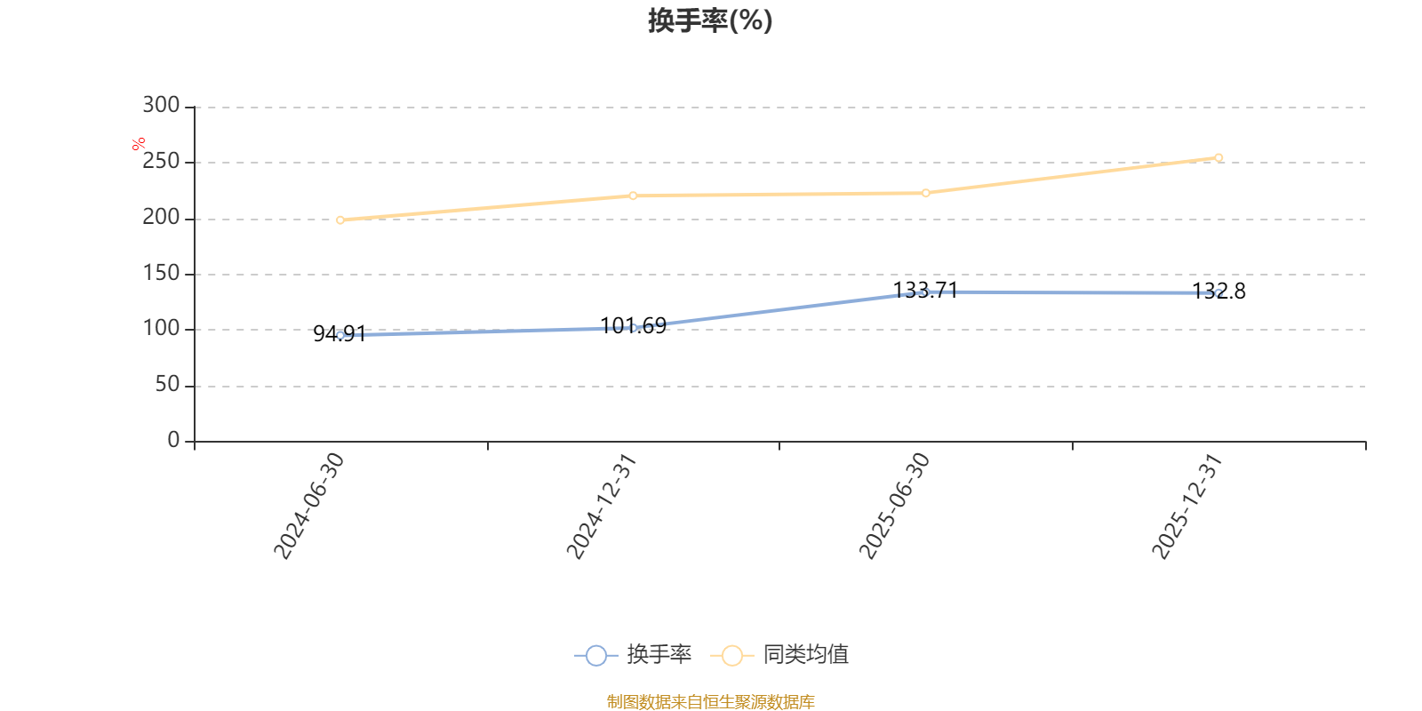 截至2025年12月31日,基金最近一年换手率约265.05%,持续低于同类均值。