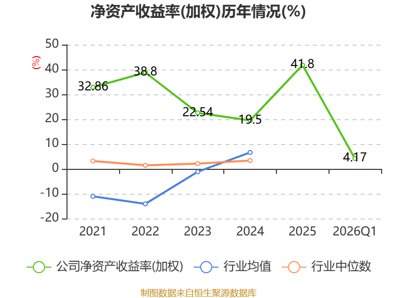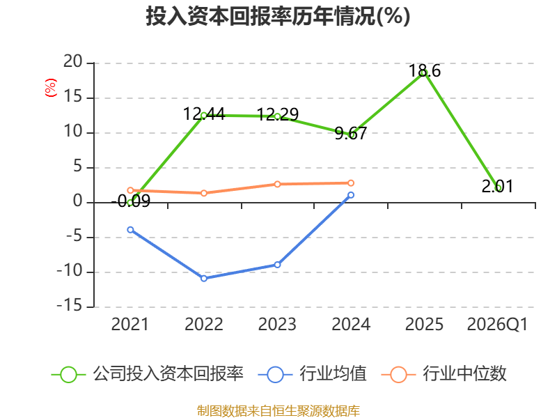 盈利能力方面, 2026年一季度公司加权平均净资产收益率为4.17%,同比下降0.06个百分点。公司2026年第一季度投入资本回报率为2.01%,较上年同期上升0.15个百分点。