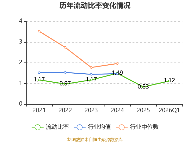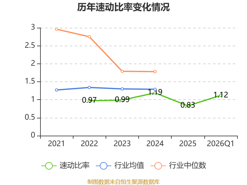 2026年第一季度,公司流动比率为1.12,速动比率为1.12。
