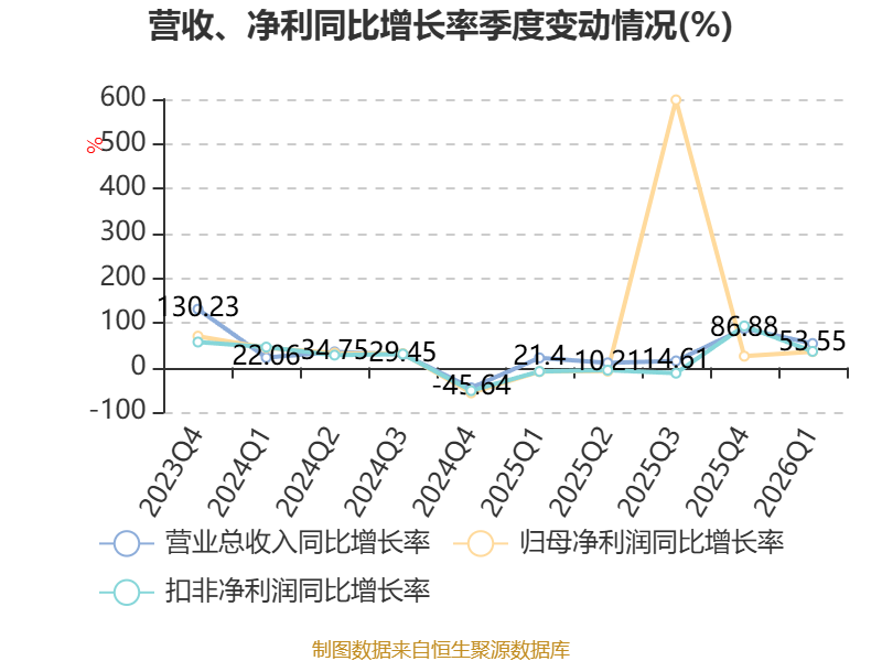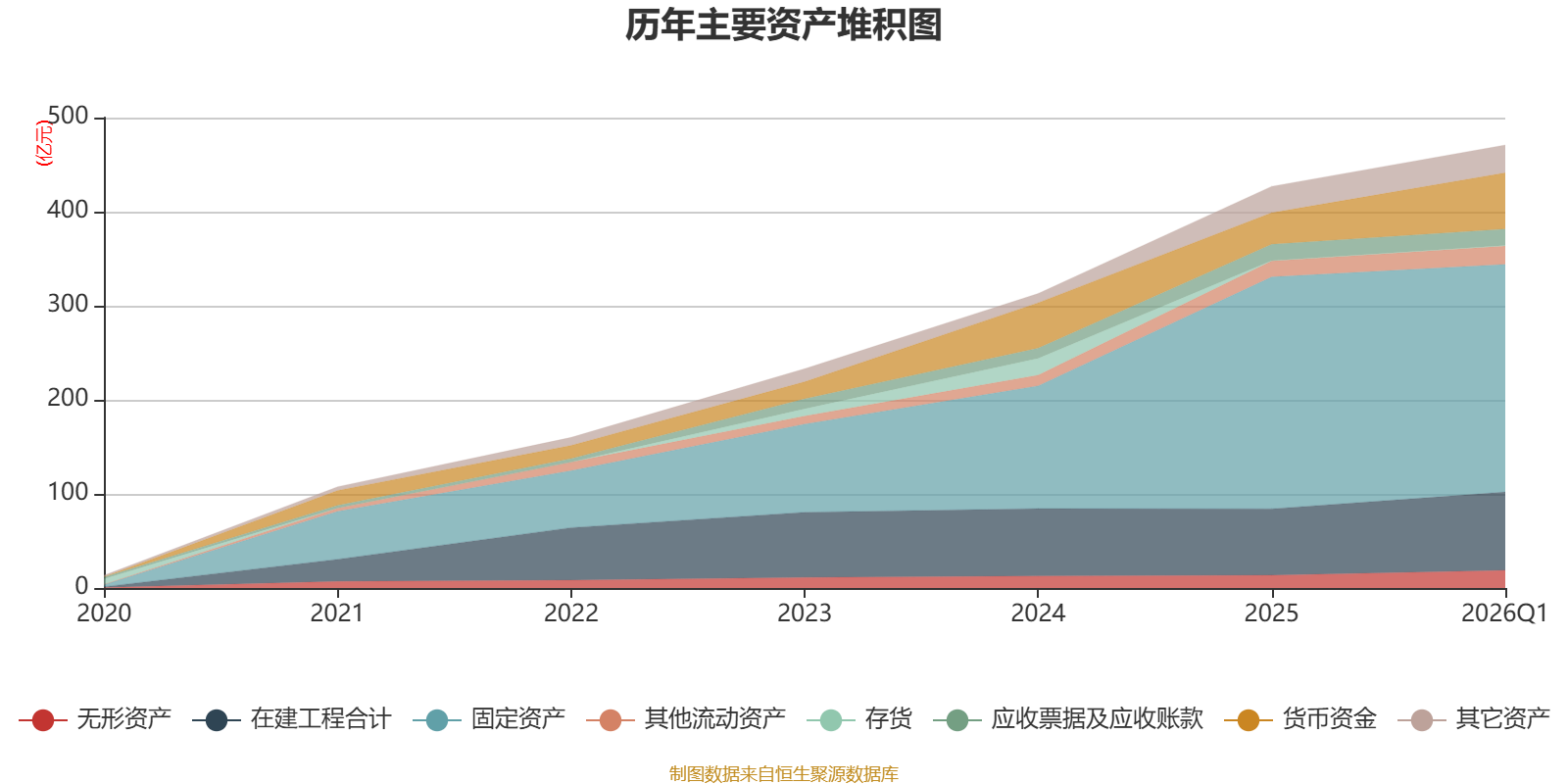 资产重大变化方面,截至2026年一季度末,公司固定资产较上年末减少1.85%,占公司总资产比重下降6.36个百分点;货币资金较上年末增加78%,占公司总资产比重上升4.82个百分点;在建工程合计较上年末增加18.05%,占公司总资产比重上升1.16个百分点;无形资产较上年末增加37.93%,占公司总资产比重上升0.8个百分点。