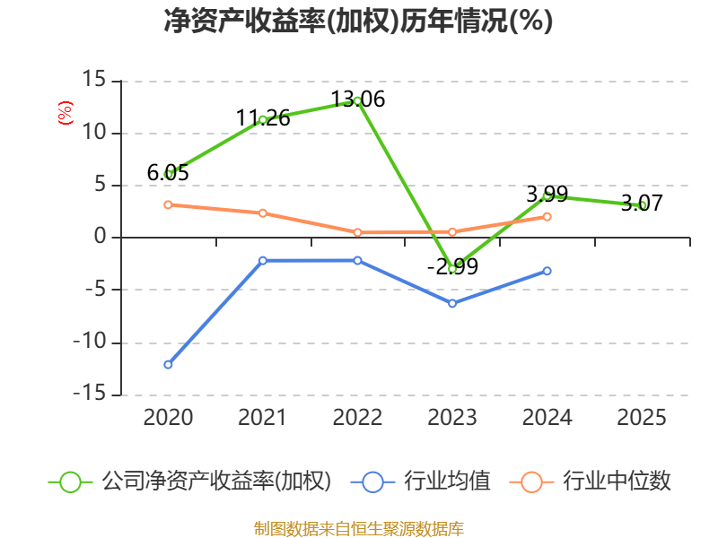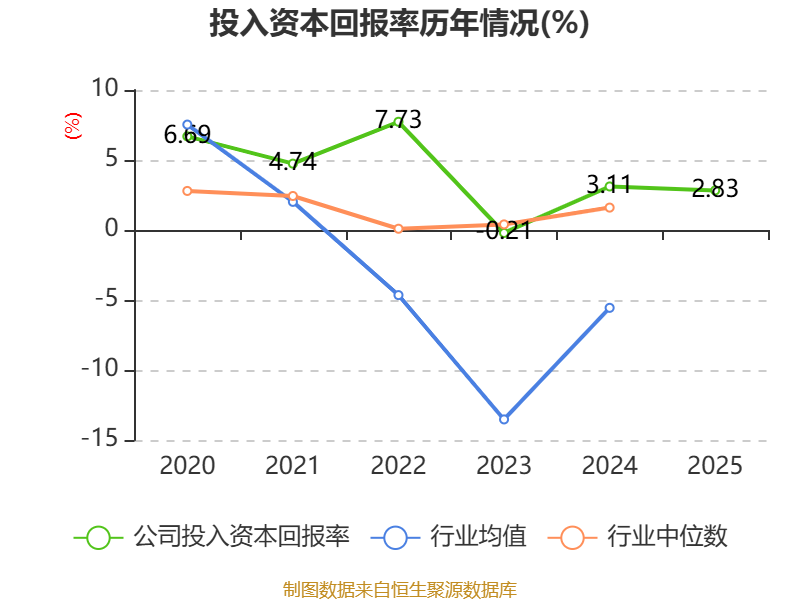 数据显示,2025年公司加权平均净资产收益率为3.07%,较上年同期下降0.92个百分点。公司2025年投入资本回报率为2.83%,较上年同期下降0.28个百分点。