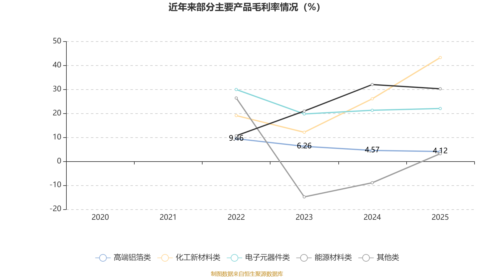 资料显示,公司的主营业务包括电子元器件、化工新材料、高端铝箔、液冷科技、具身智能、能源材料六大板块。