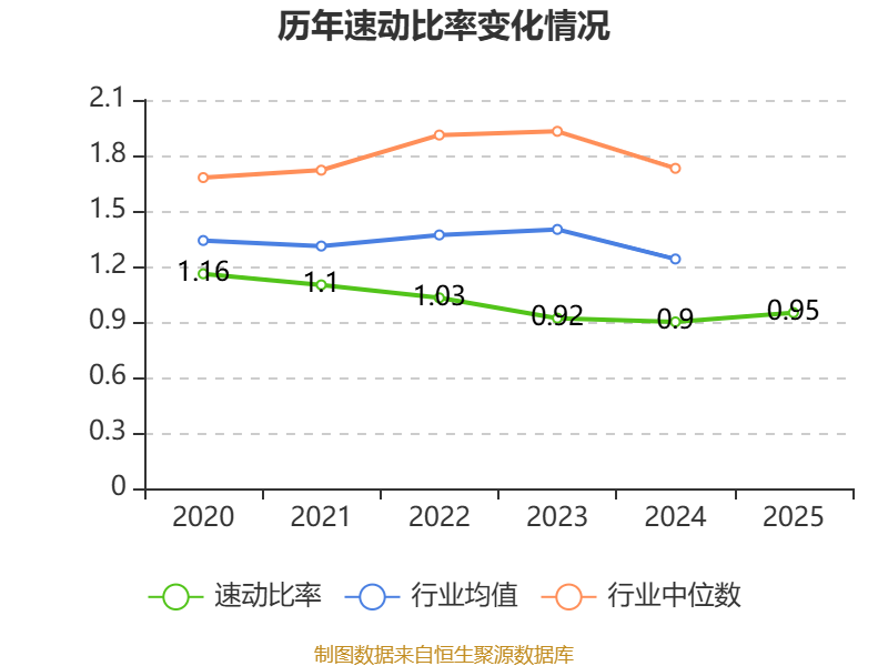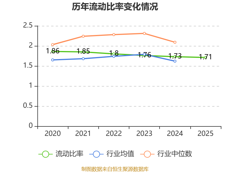 2025年,公司流动比率为1.71,速动比率为0.95。