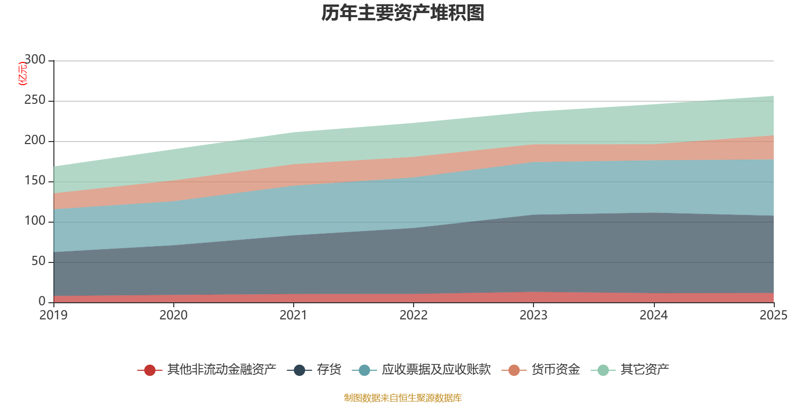 资产重大变化方面,截至2025年末,公司货币资金较上年末增加49.13%,占公司总资产比重上升3.51个百分点;存货较上年末减少3.89%,占公司总资产比重下降3.18个百分点;应收票据及应收账款较上年末增加7.43%,占公司总资产比重上升0.81个百分点;在建工程合计较上年末增加53.99%,占公司总资产比重上升0.52个百分点。