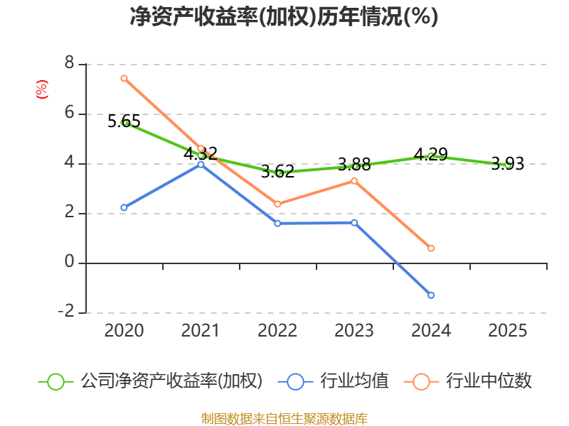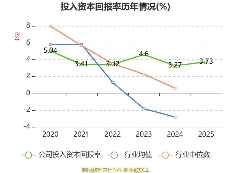 数据显示,2025年公司加权平均净资产收益率为3.93%,较上年同期下降0.36个百分点。公司2025年投入资本回报率为3.73%,较上年同期上升0.46个百分点。
