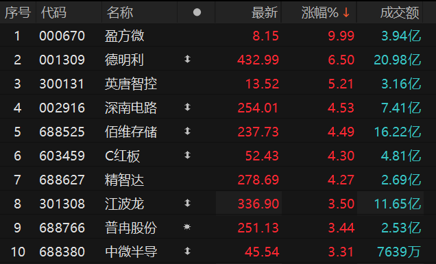 上证报中国证券网讯 4月10日,存储芯片概念拉升,截至9时36分,盈方微涨停,德明利涨超6%,英唐智控、深南电路、佰维存储等跟涨。