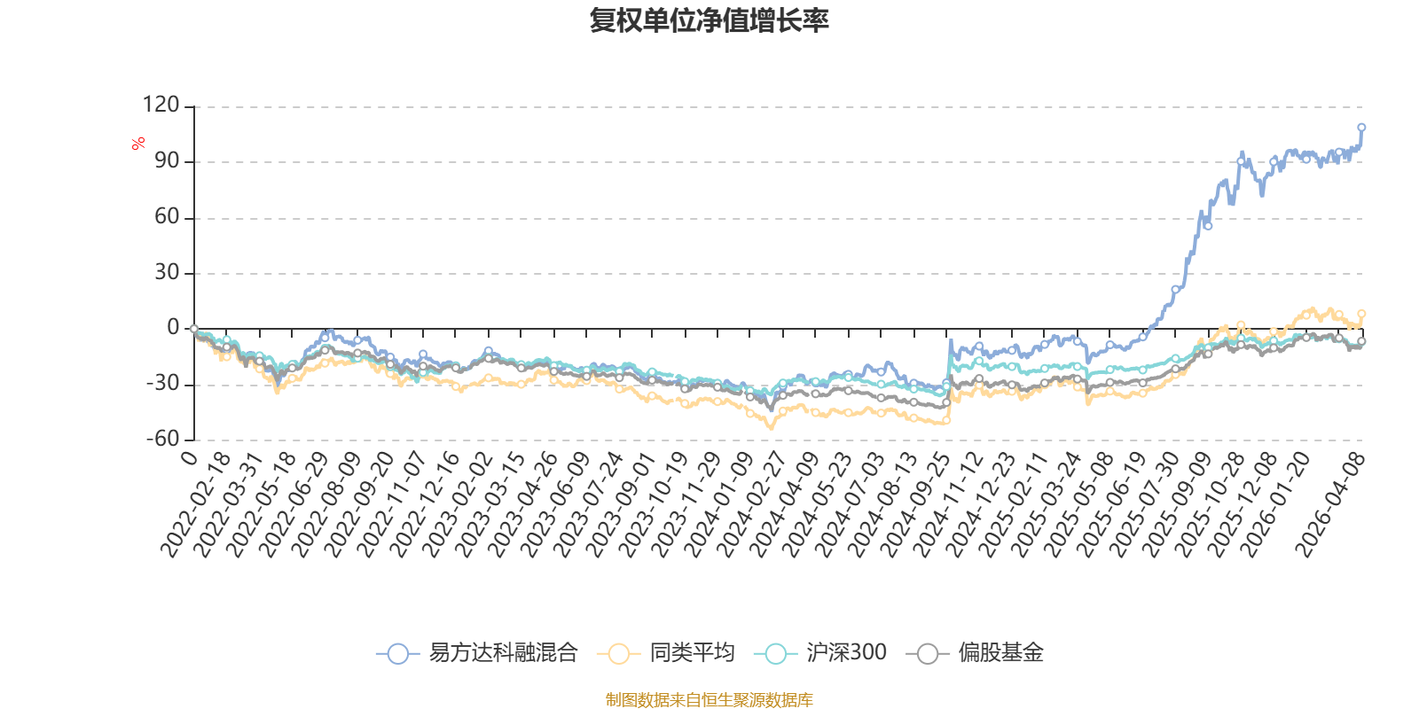 截至4月8日,易方达科融混合近三个月复权单位净值增长率为7.87%,位于同类可比基金54/229;近半年复权单位净值增长率为16.82%,位于同类可比基金50/229;近一年复权单位净值增长率为155.90%,位于同类可比基金22/229;近三年复权单位净值增长率为156.21%,位于同类可比基金3/171。