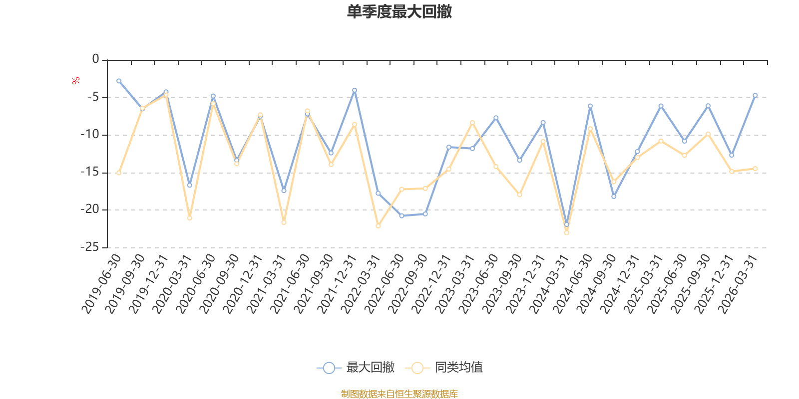 通过所选区间该基金净值增长率分位图,可以观察该基金与同类基金业绩比较情况。图为坐标原点到区间内某时点的净值增长率在同类基金中的分位数。