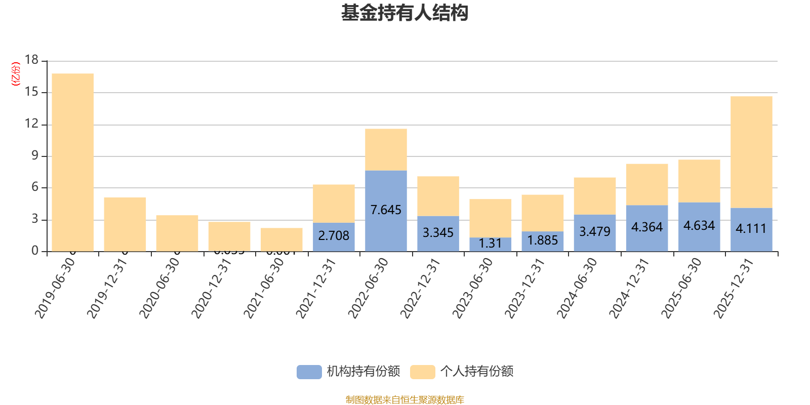 截至2025年12月31日,基金持有人共计37.63万户,合计持有14.64亿份。其中管理人员工持有228.91万份,占比0.16%,机构持有份额占比28.08%,个人投资者占比71.92%。