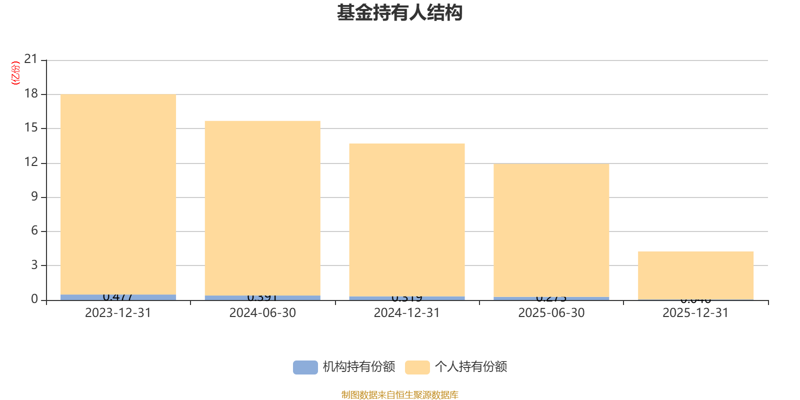 截至2025年12月31日,基金持有人共计6033户,合计持有4.25亿份。其中管理人员工持有54.17万份,占比0.13%,机构持有份额占比1.07%,个人投资者占比98.93%。
