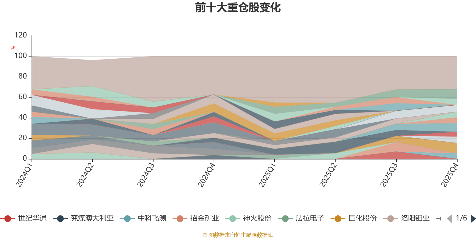 该基金持股集中度较高。截至2025年末,基金十大重仓股分别是巨化股份、中芯国际、寒武纪、深南电路、云铝股份、中材科技、紫金矿业、东山精密、中科飞测、佰维存储。
