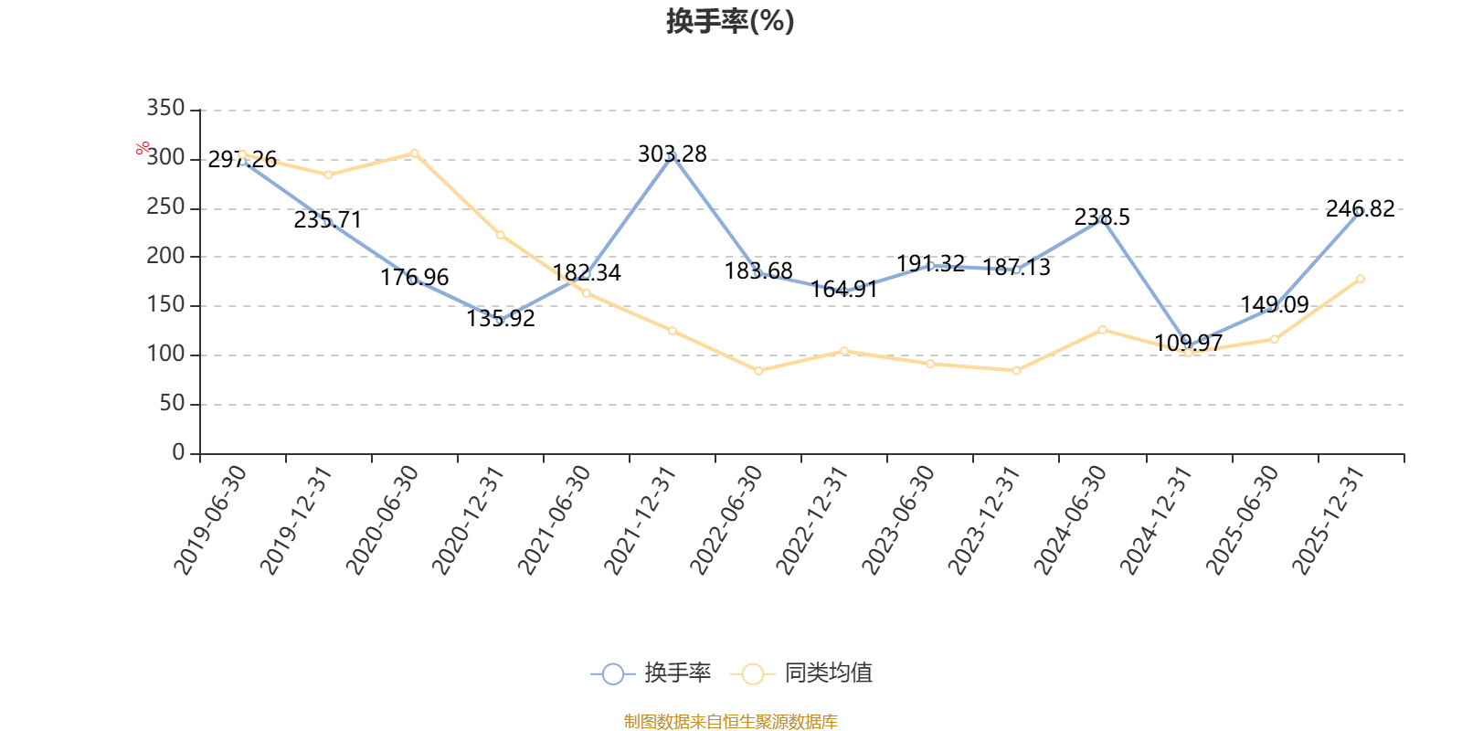 截至2025年12月31日,基金最近一年换手率约393.49%,持续5年高于同类均值。