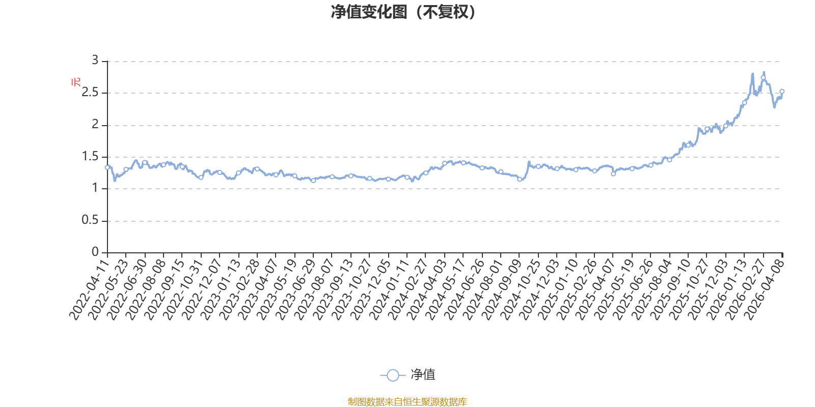 该基金属于偏股混合型基金,长期投资于周期股票。截至4月8日,单位净值为2.525元。基金经理是朱运。