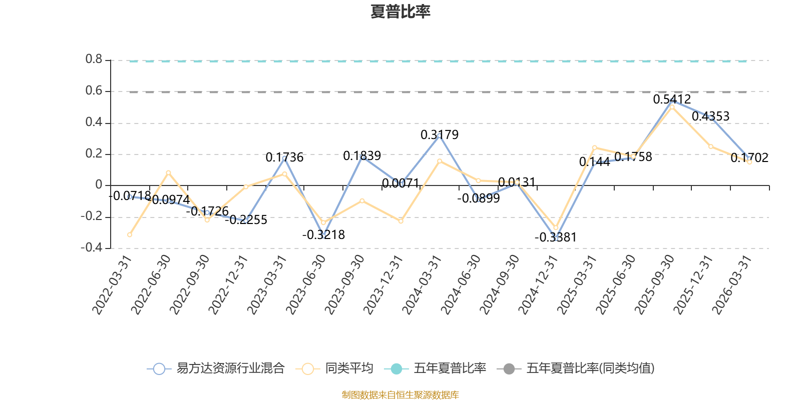 截至3月31日,基金近三年夏普比率为1.259,位于同类可比基金3/30。