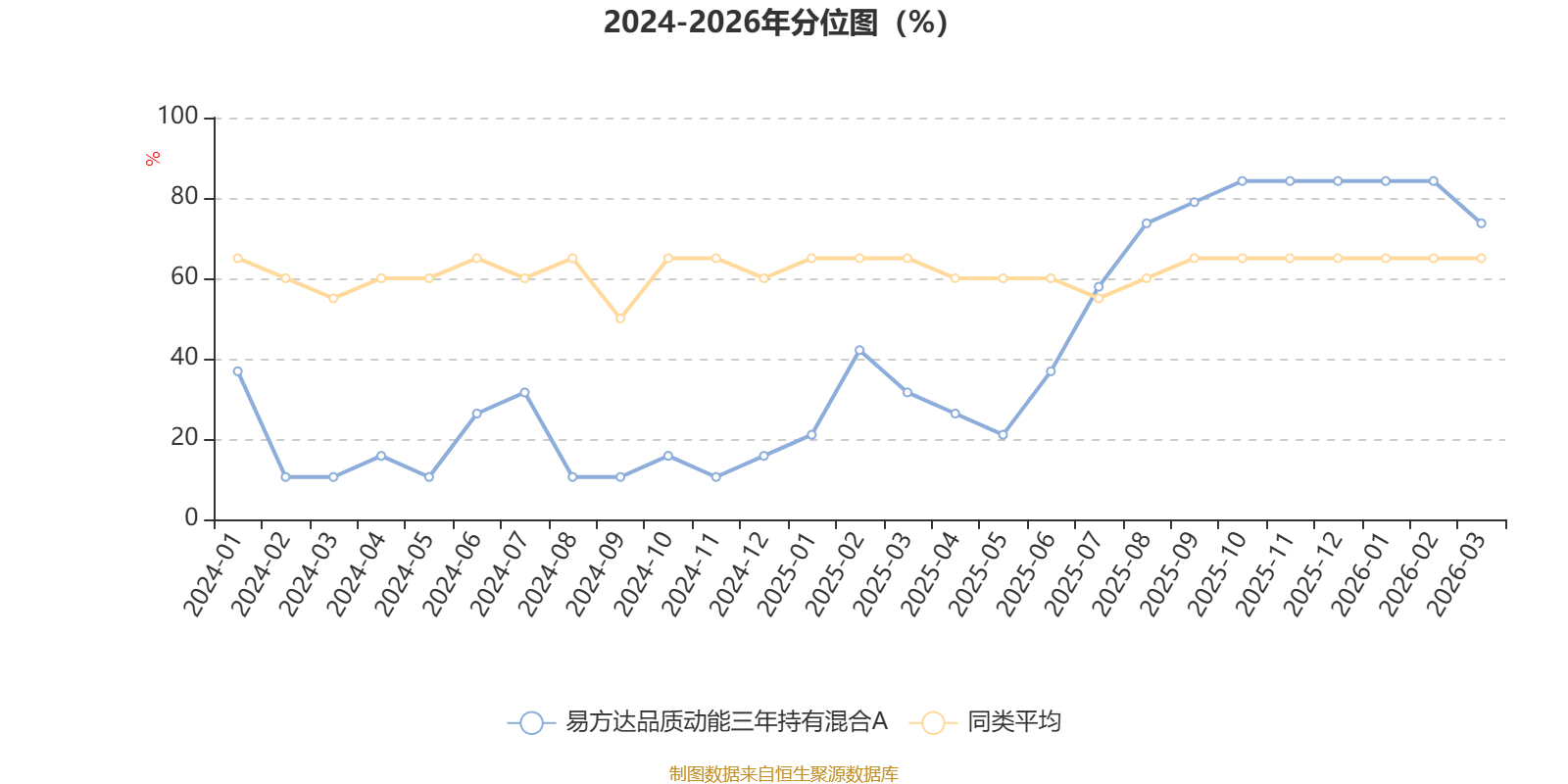 通过所选区间该基金净值增长率分位图,可以观察该基金与同类基金业绩比较情况。图为坐标原点到区间内某时点的净值增长率在同类基金中的分位数。