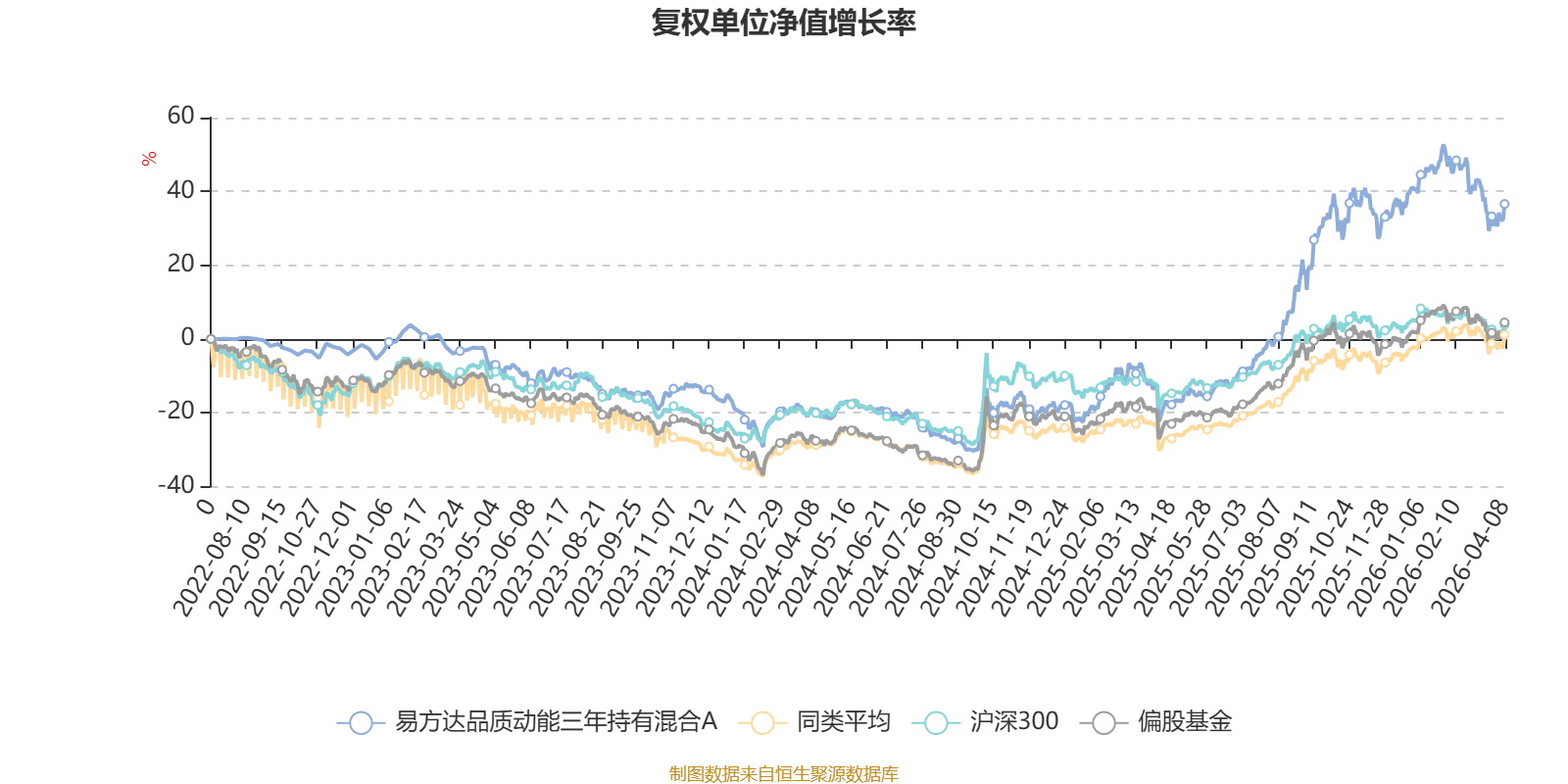截至4月8日,易方达品质动能三年持有混合A近三个月复权单位净值增长率为-4.97%,位于同类可比基金19/20;近半年复权单位净值增长率为0.26%,位于同类可比基金14/20;近一年复权单位净值增长率为74.13%,位于同类可比基金5/20;近三年复权单位净值增长率为39.92%,位于同类可比基金5/19。