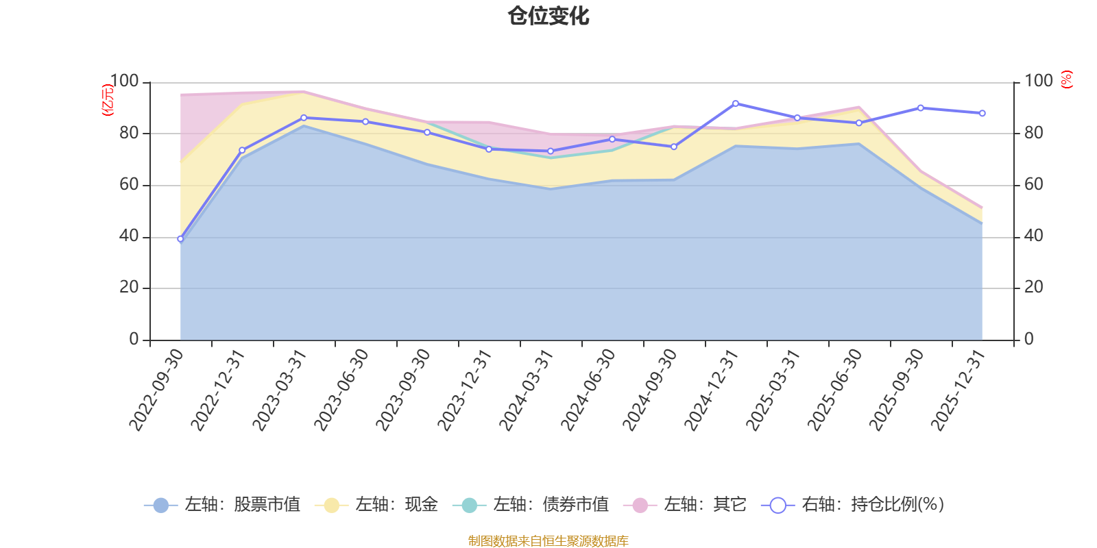据定期报告数据统计,近三年平均股票仓位为82.66%,同类平均为86.82%。2024年末基金达到91.75%的最高仓位,2022年三季度末最低,为39.26%。