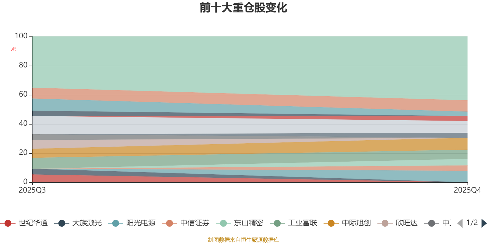 该基金持股集中度较高。截至2025年末,基金十大重仓股分别是中际旭创、新易盛、阳光电源、腾讯控股、工业富联、东山精密、中信证券、立讯精密、沪电股份、深南电路。