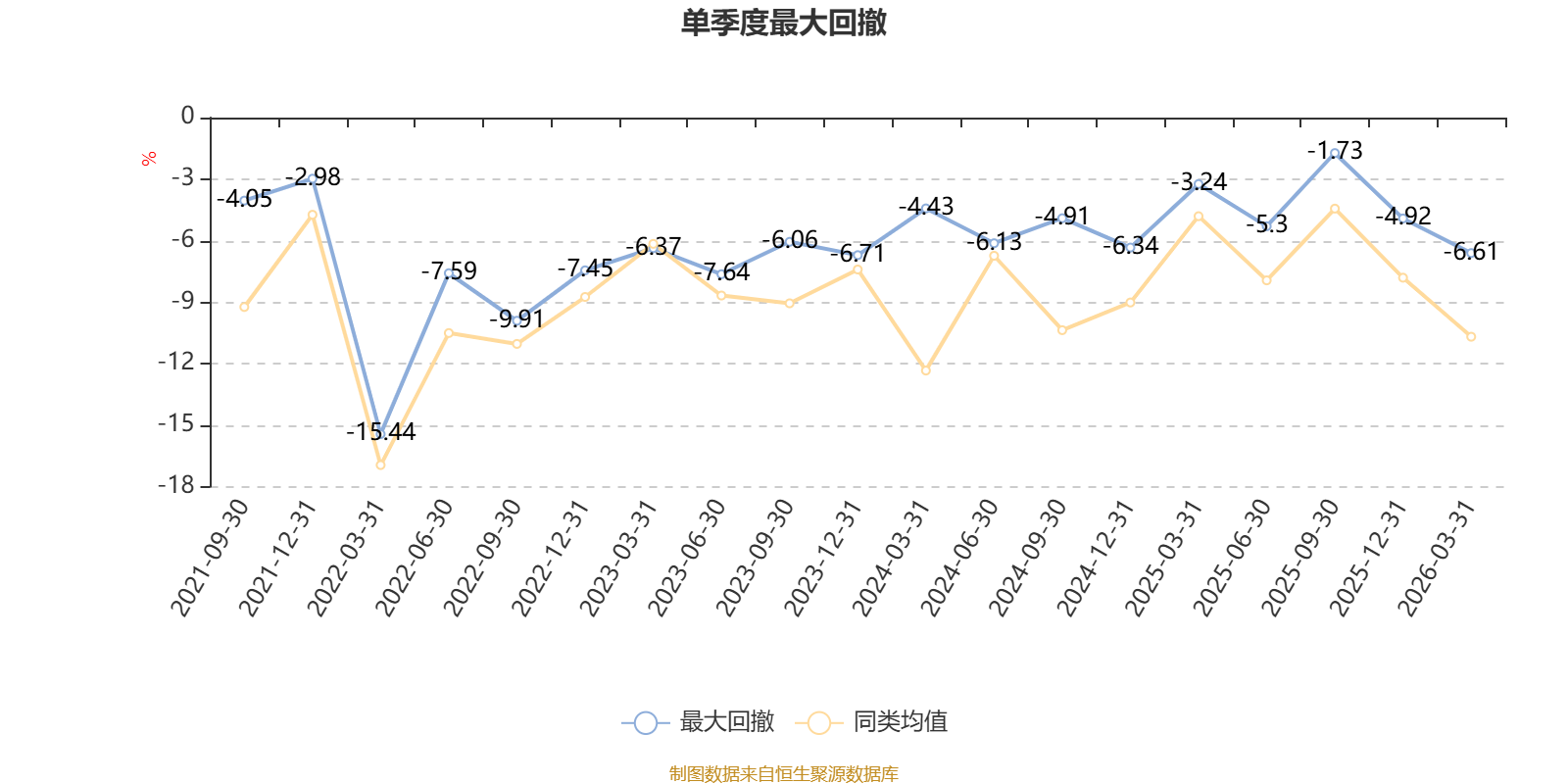 截至4月8日,基金近三年最大回撤为13.28%,同类可比基金排名14/122。单季度最大回撤出现在2022年一季度,为15.44%。