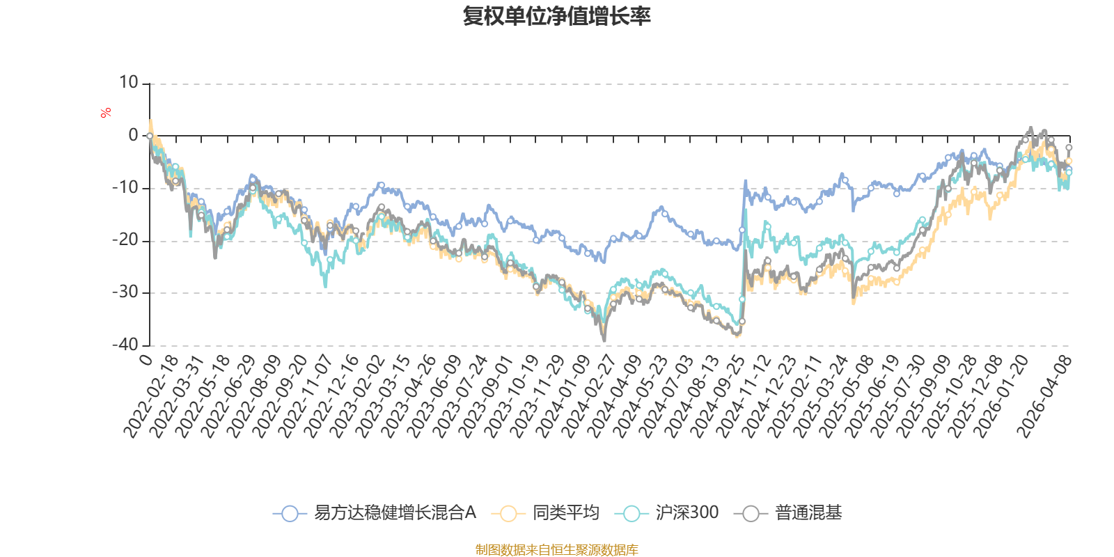 该基金属于股债平衡型基金。截至4月8日,单位净值为0.941元。基金经理是孙松,目前管理的4只基金近一年均为正收益。其中,截至4月8日,易方达稳健回报混合A近一年复权单位净值增长率最高,达8.31%;易方达稳健添利混合A最低,为4.95%。