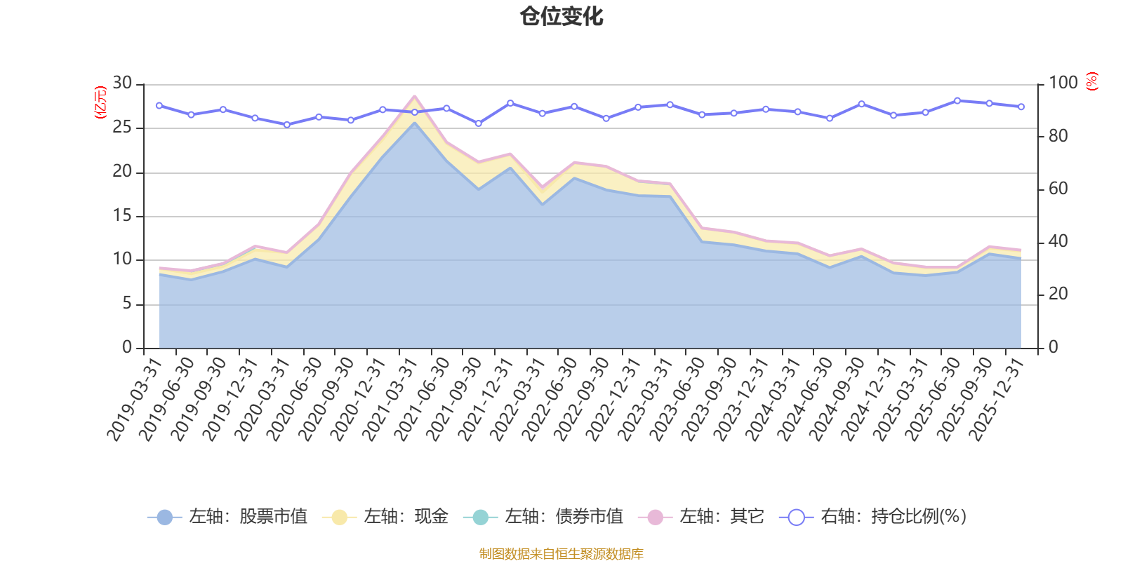 据定期报告数据统计,近三年平均股票仓位为90.4%,同类平均为86.12%。2025年上半年末基金达到93.74%的最高仓位,2020年一季度末最低,为84.64%。