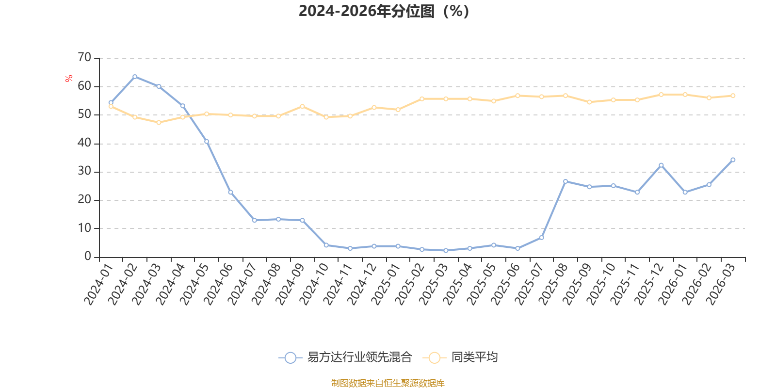 通过所选区间该基金净值增长率分位图,可以观察该基金与同类基金业绩比较情况。图为坐标原点到区间内某时点的净值增长率在同类基金中的分位数。