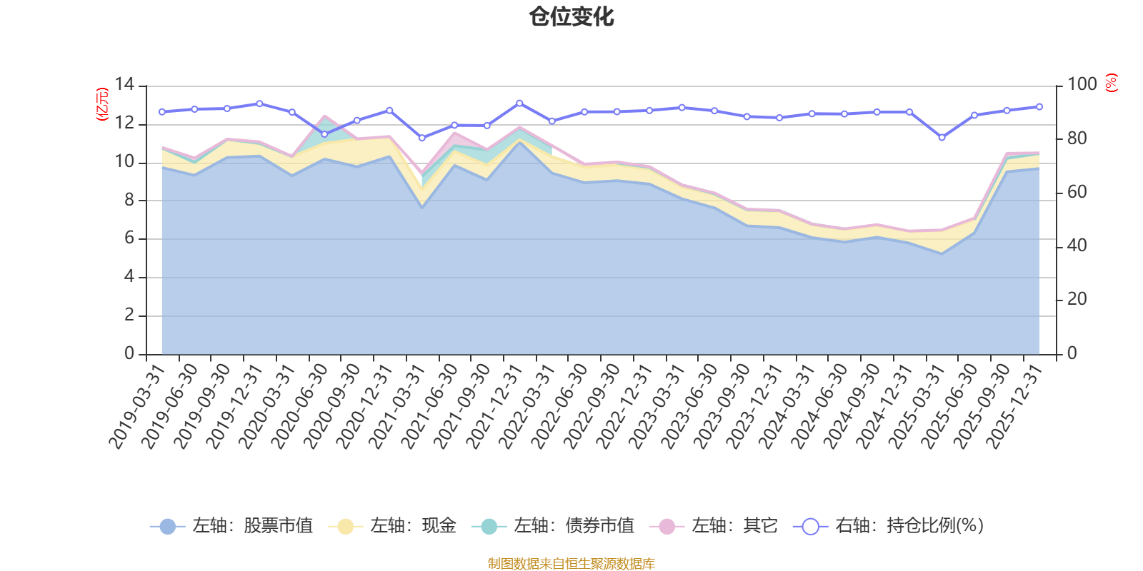 据定期报告数据统计,近三年平均股票仓位为89.26%,同类平均为72.57%。2021年末基金达到93.46%的最高仓位,2021年一季度末最低,为80.57%。