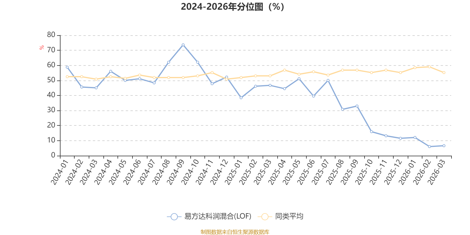 通过所选区间该基金净值增长率分位图,可以观察该基金与同类基金业绩比较情况。图为坐标原点到区间内某时点的净值增长率在同类基金中的分位数。
